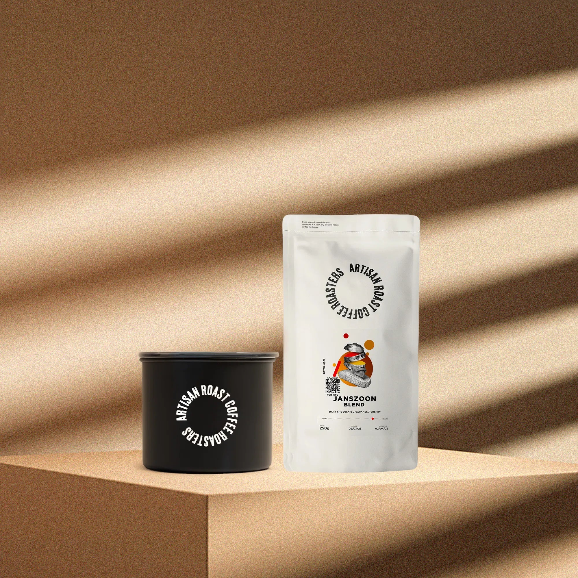 This year’s Christmas bundle brings together two Artisan Roast favourites: a 250g Airscape coffee storage canister and 250g of our signature Janszoon blend.