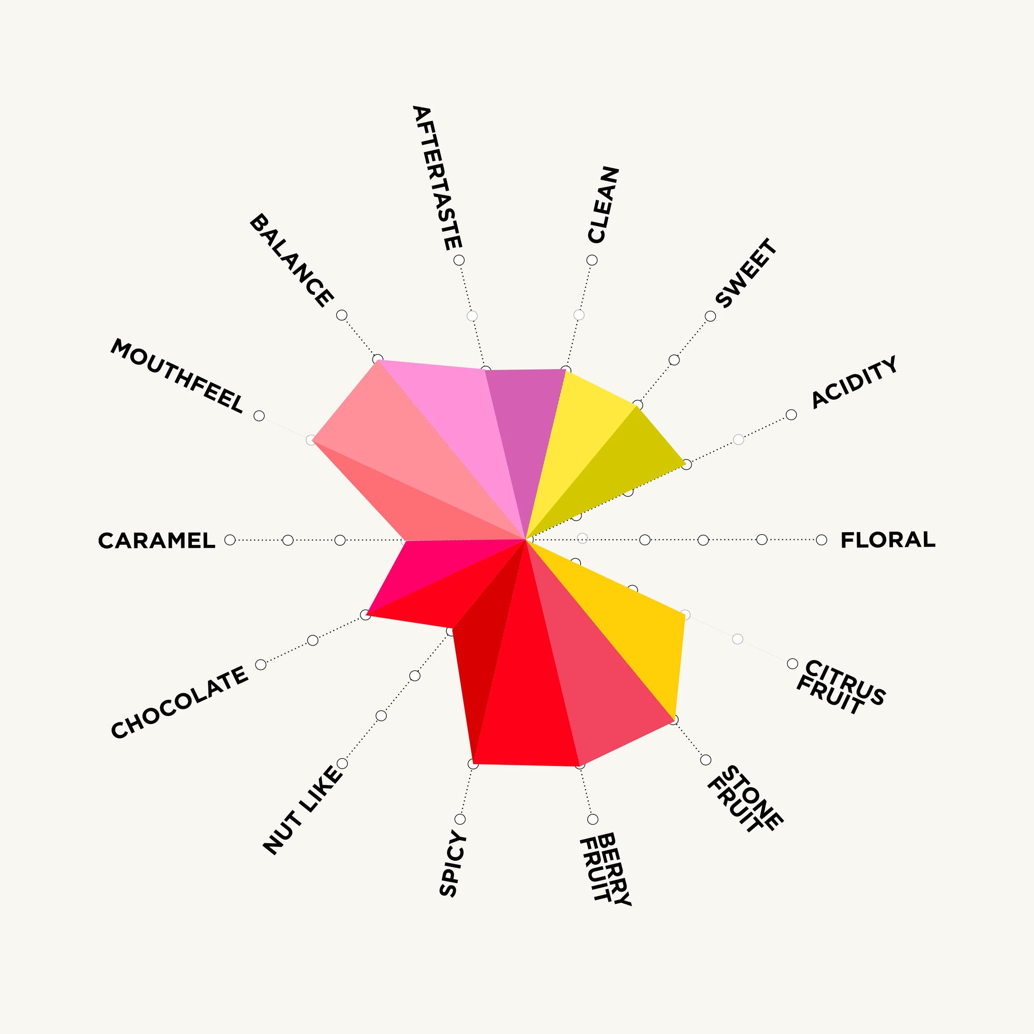 Light roasted. Red berry and prune, followed by subtle winey notes, white pepper warmth and candied lemon acidity over a syrupy, clean finish.