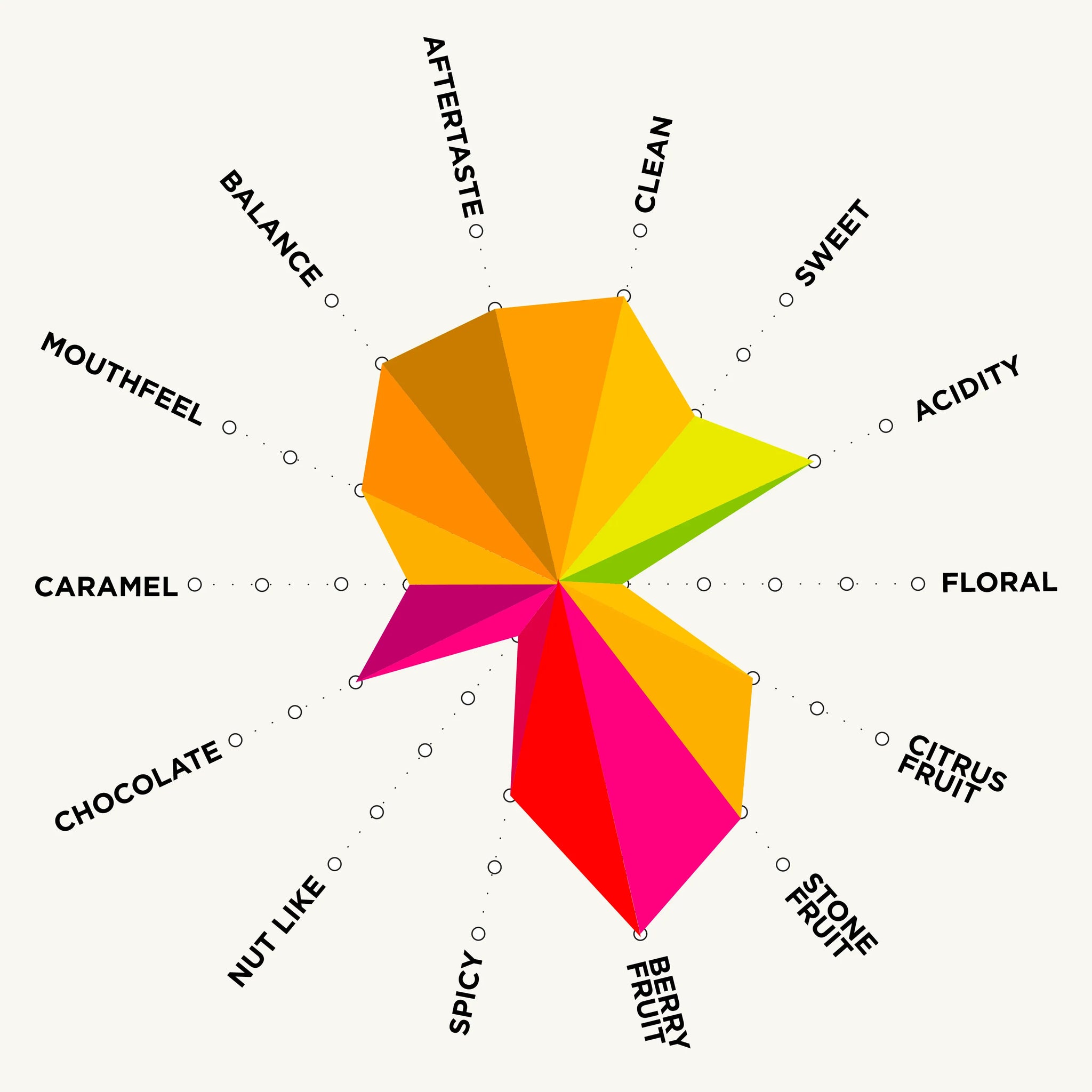 Beyond the primary flavours of ripe banana, guava, and cherry, intricate layers highlight Elias and Shady's craftsmanship. Bold tropical fruit notes of mango and strawberry, zesty orange citrus, cacao, and a subtle honeyed undertone create a complex flavour profile. A warming hint of nutmeg and pepper spices on the finish leads to a smooth lactic aftertaste. The full and viscous mouthfeel adds a harmonious counterpoint to the ripe fruit-forward elements.