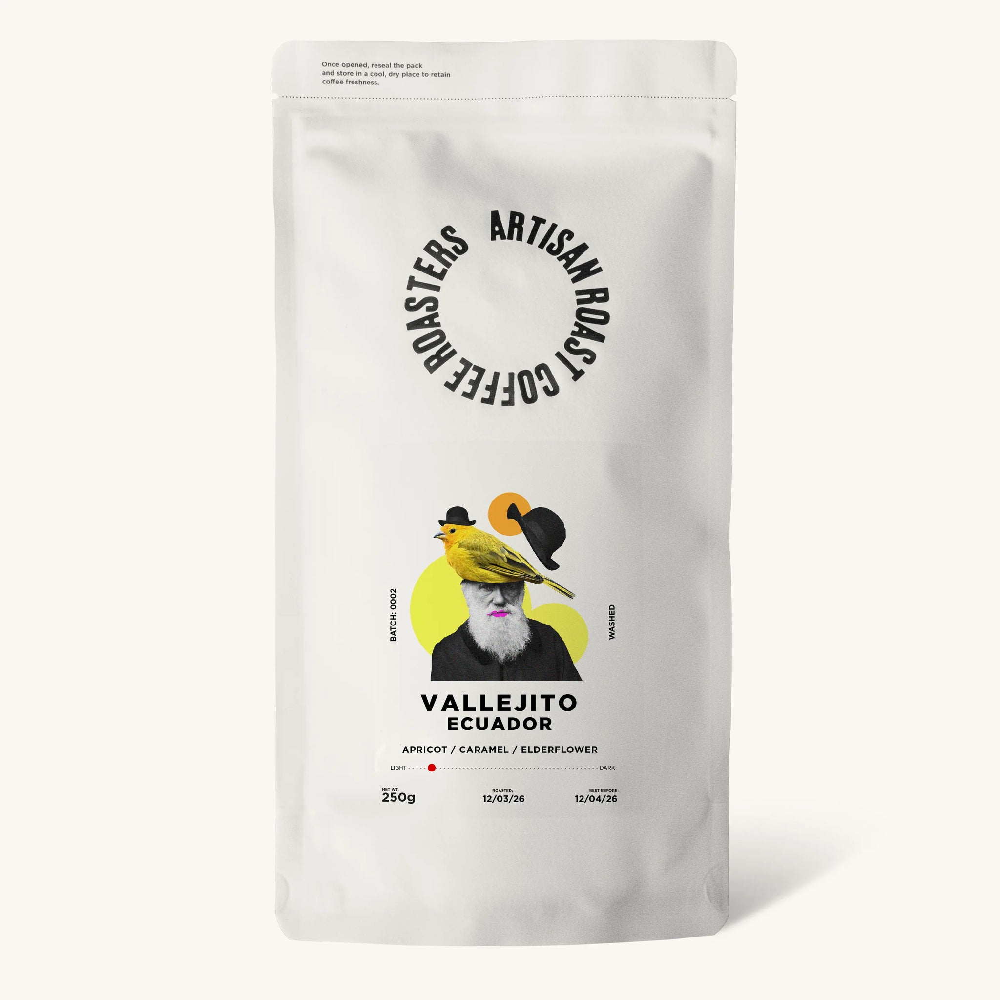 Vallejito has been kept light in the roast and primary flavours of ripe apricot, sugar cane and elderflower combine harmoniously. Undertones of lemon citrus, almond and cranberry add to the expressiveness and complexity of the coffee. The acidity is medium in intensity, effervescent and balanced by a full round and juicy mouthfeel. This accentuates the apricot notes and florality, extending the persistence on the finish.